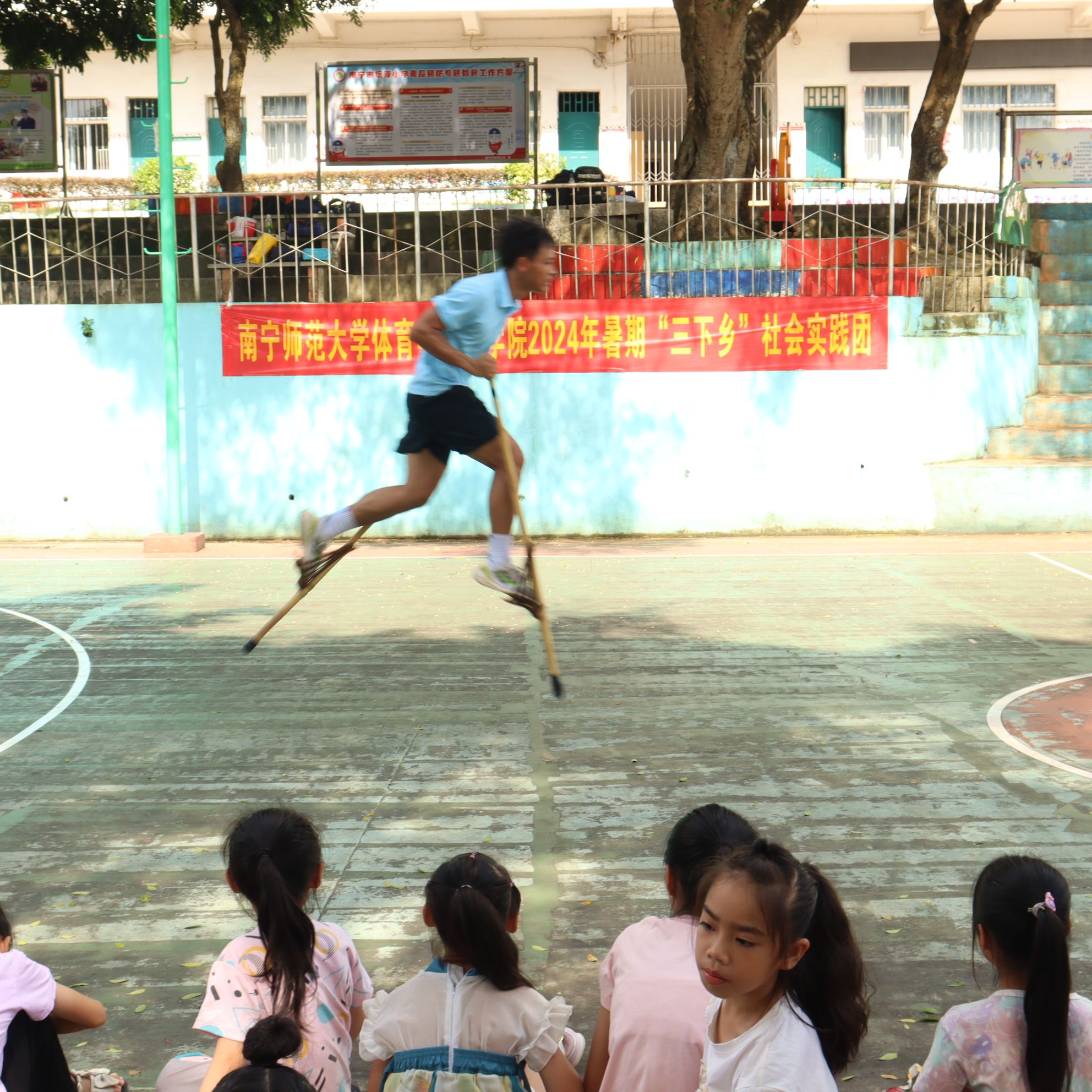 本次少数民族传统体育课堂表演分位三部分。首先由黄连棉同学为小朋友们讲解少数民族传统体育项目。接着,社会实践团队里的志愿者们为小朋友们展示了背篓绣球、板鞋竞速、高跷、滚铁环、珍珠球等5项少数民族传统体育项目。活动现场,小朋友们踊跃参与少数民族传统体育项目,并发表体验感想。