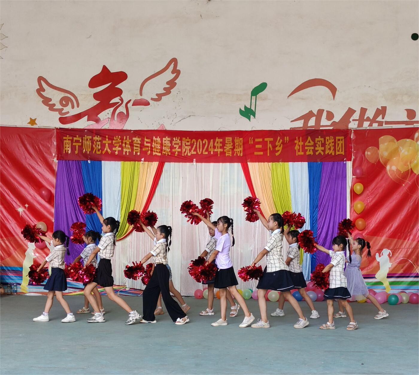 汇演在武术班的《功夫小巨星》拉开序幕,足球班《足球小明星》、排球班《排球操》、花球班《加油ANIGO》、音乐班《送你一朵小红花》等多个节目陆续登场,其中篮球班《我与篮球的未来》更是将汇演推向了高潮,现场响起阵阵掌声。汇演在全体实践团成员的大合唱《明天会更好》中落下帷幕,整场演出歌声、笑声、掌声、欢呼声交融在一起,形式丰富、氛围浓烈,为现场观众带来了一场视听盛宴,进一步丰富了社区居民的文化生活。汇演结束后,坛泽村第一书记齐丽丽作总结发言,对汇演的圆满落幕表示祝贺、对实践团成员的辛勤付出表示衷心的感谢,并代表村委为参演的小朋友们送上小礼物。