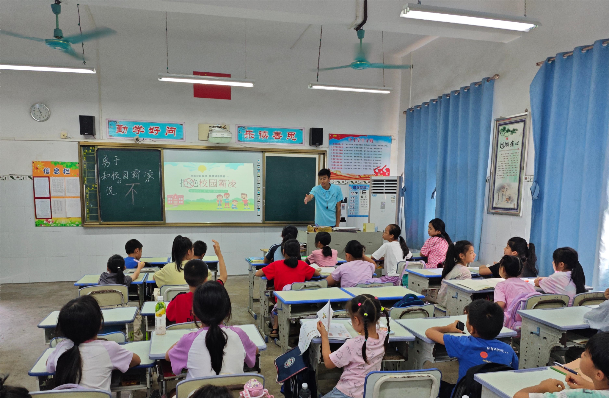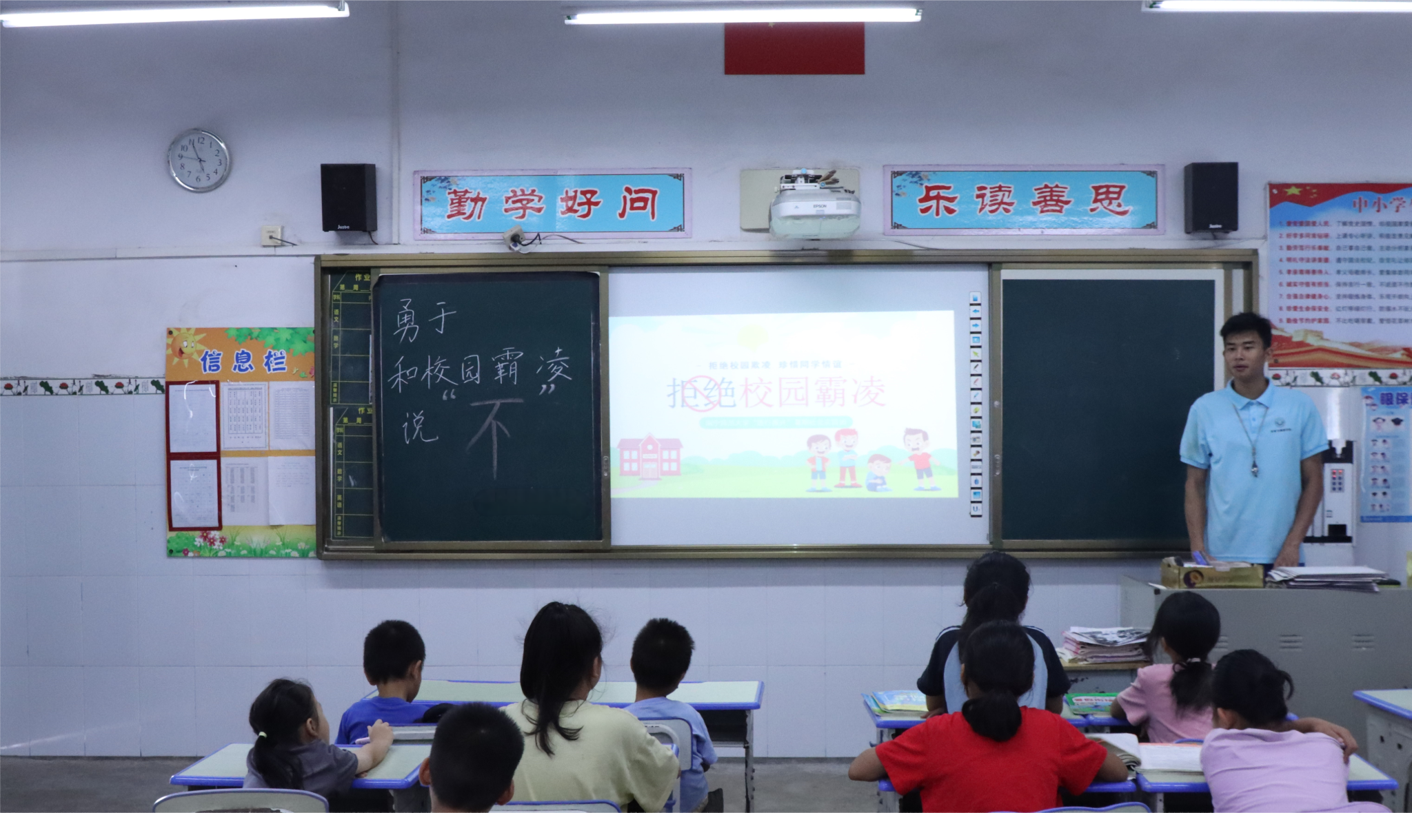 课堂上,实践团成员朱恺坤结合真实的案例,向现场的孩子们详细讲解了校园欺凌的原因以及影响,重点讲解了预防校园霸凌的方法与措施,并普及相关的法律法规,鼓励全体员工要勇于运用法律维护自身的合法权益,用于对校园霸凌说“不”。他告诫同学们,校园霸凌是违法违纪行为,同学们要明辨是非、团结有爱、共同进步,远离暴力。与会少年儿童对“如何预防校园霸凌”“遇到校园霸凌怎么办”等话题进行踊跃发言、积极互动,教育引导效果良好。