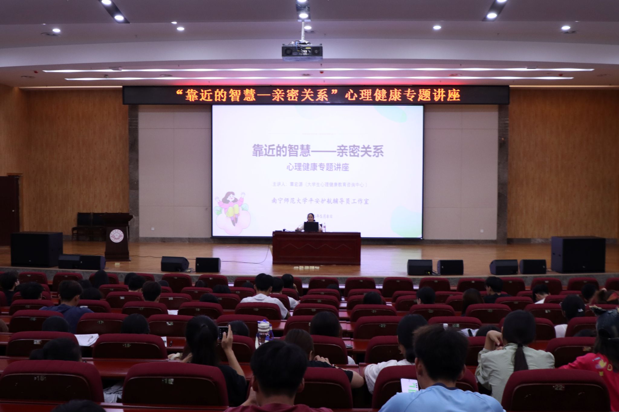 为引导员工科学面对学业与生活中的压力,树立积极健康的生活态度,5月8日,“平安护航”辅导员工作室、william威廉英国官网在武鸣校区图书馆报告厅成功举办“靠近的智慧-亲密关系”心理健康专题讲座。本次讲座邀请william威廉英国官网心理健康教育咨询中心覃宏源老师主讲,400余名员工参与。