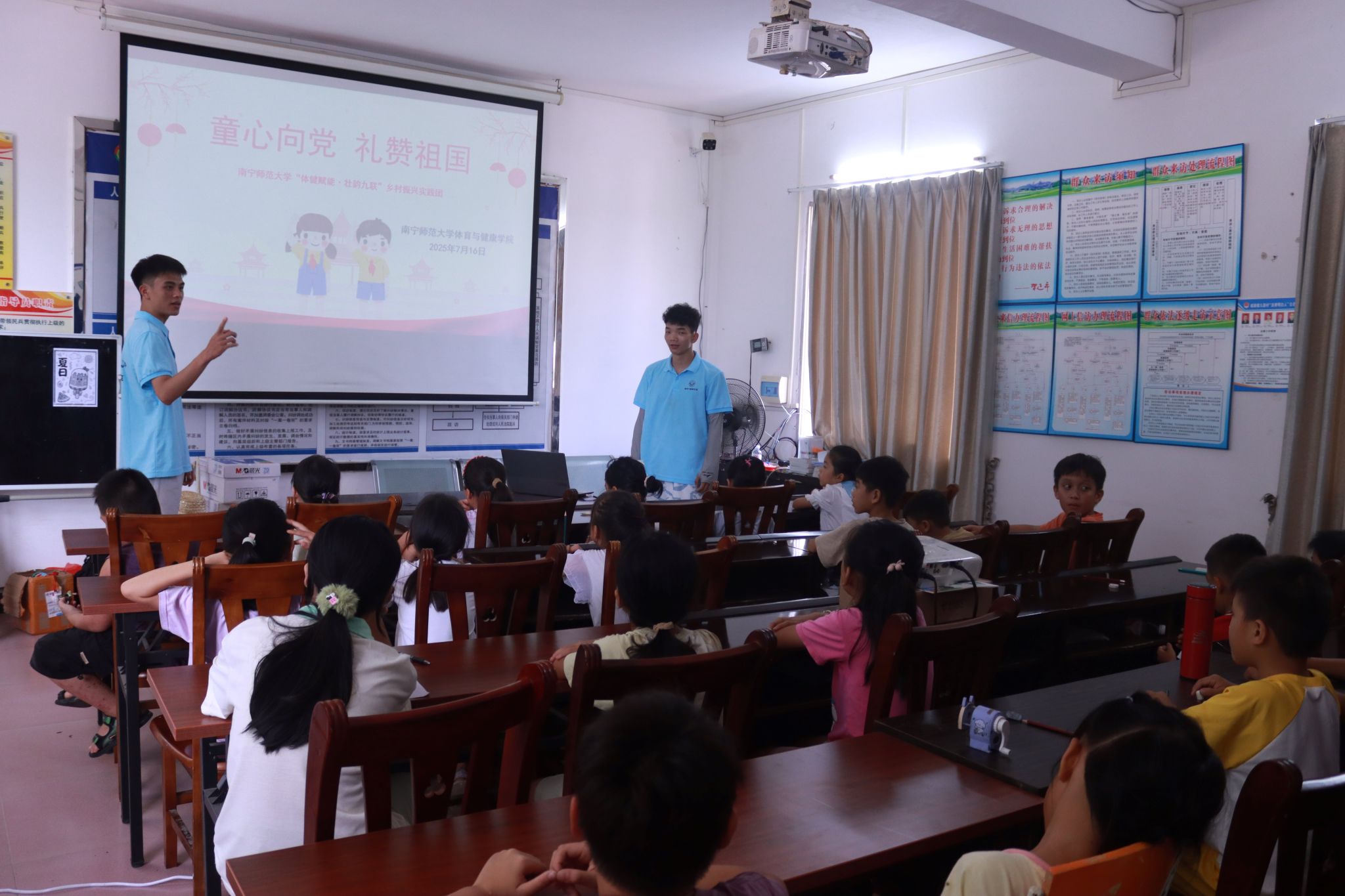 为深入学习贯彻习近平新时代中国特色社会主义思想,以青年老员工赋能乡村振兴,让公司青年学子在实践中受教育、长才干、做贡献,william威廉英国官网“体健赋能·壮韵九联”实践团于7月14日-7月20日在南宁市武鸣区九联村开展为期七天的七彩课堂支教活动。