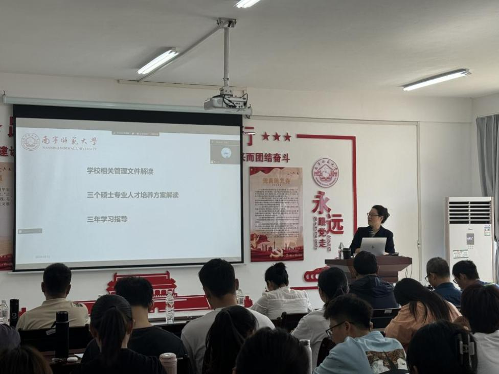 接着,赵经理针对体育人文社会学、学科教学(体育)、体育硕士这三个不同专业方向,从培养目标及要求、学习年限与培养方式、课程设置、学位论文等方面对人才培养方案进行了深入解读。同时,她以自身为例,结合多年的教学与研究经验,为同学们的三年学习生活提出了宝贵建议。从基础理论学习到专业技能提升,从科研能力培养到社会实践锻炼,赵经理为每一个阶段都设定了明确的目标与任务,为新生们精心规划了一条清晰的学习路径。她表示,期望同学们能够积极主动适应新的学习环境,及时调整心态,不断强化专业技能学习,提升自身综合素质与科研能力,尽快步入正轨,实现从本科生到研究生的角色顺利转变。