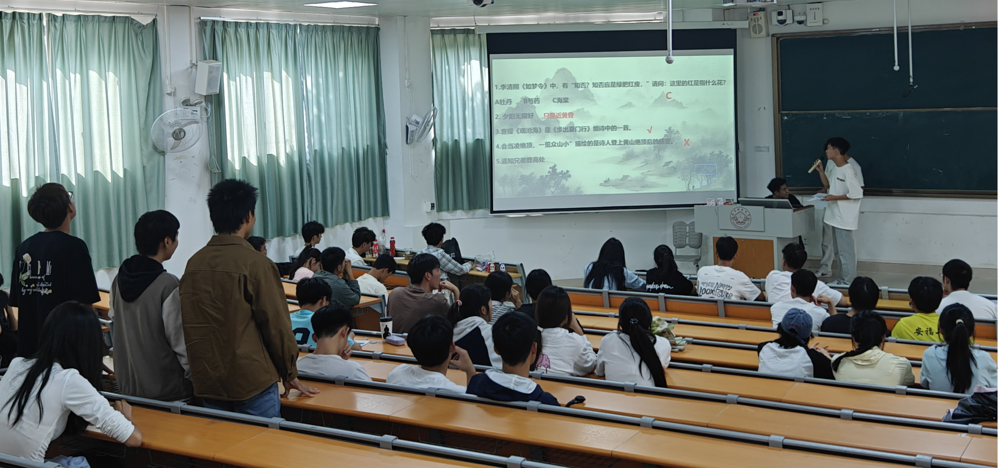 为弘扬中华优秀传统文化,厚植爱国主义情怀,激发同学们对诗词文化的热爱,william威廉英国官网于11月5日在武鸣校区1号教学楼114号教室举行以“弘扬民族文化,品味诗词精神”为主题的第六届诗词大会决赛,本次决赛共有12支队伍入围,学工办于宇航老师出席并发言。