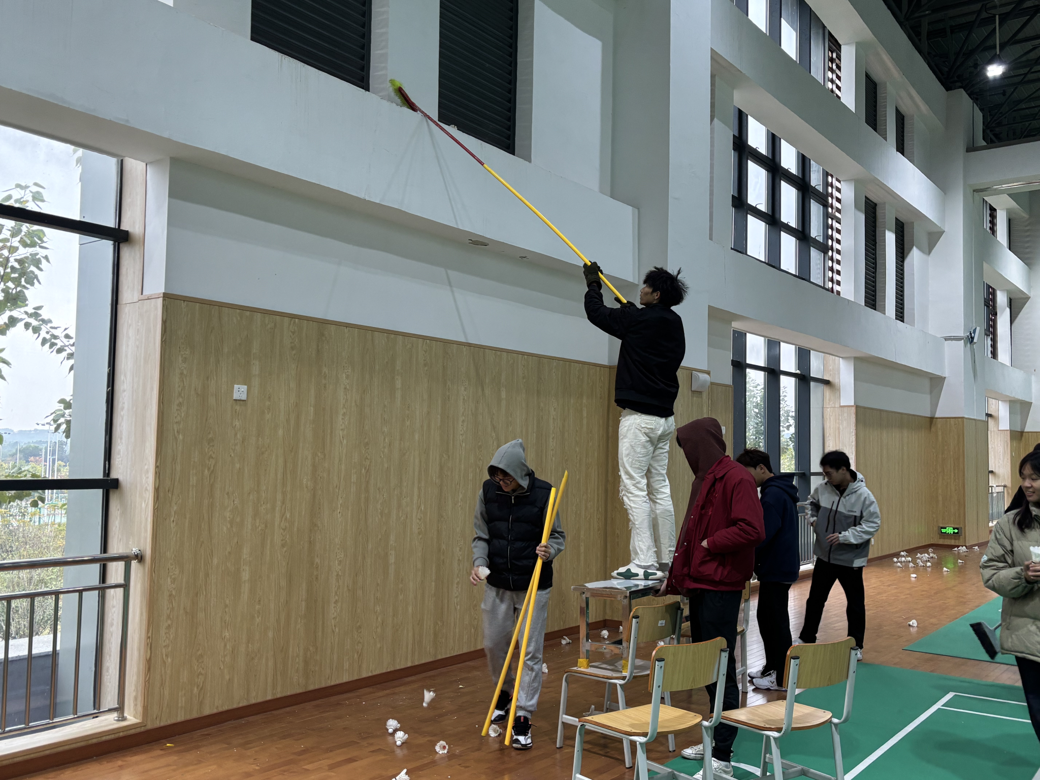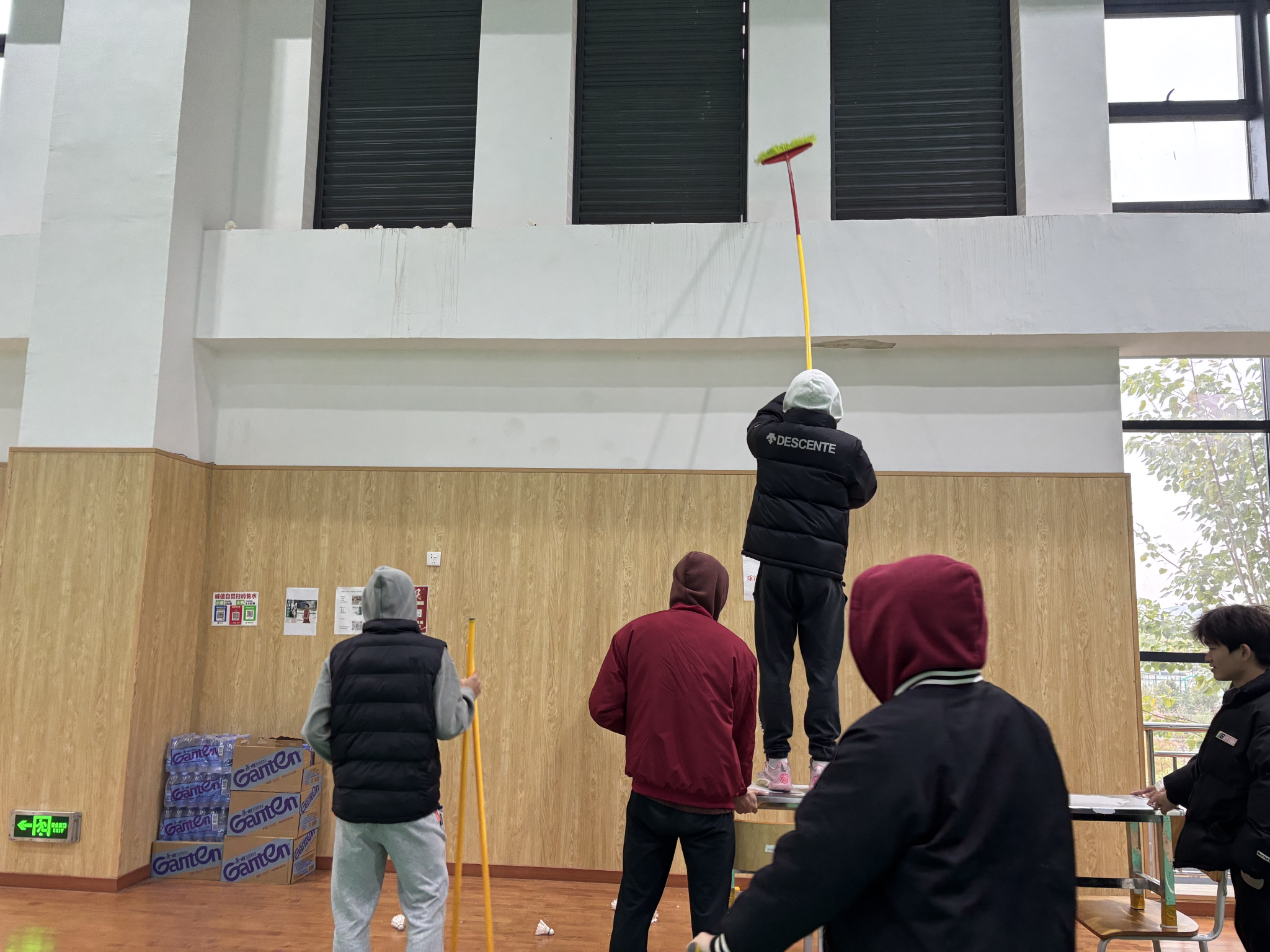 为加强老员工劳动实践教育,弘扬劳动精神,强化服务全校师生的意识,2024年12月13日,学工办黎业涛老师到场组织2023级全体员工在兰园体育馆及周边运动场地开展劳动实践活动。
