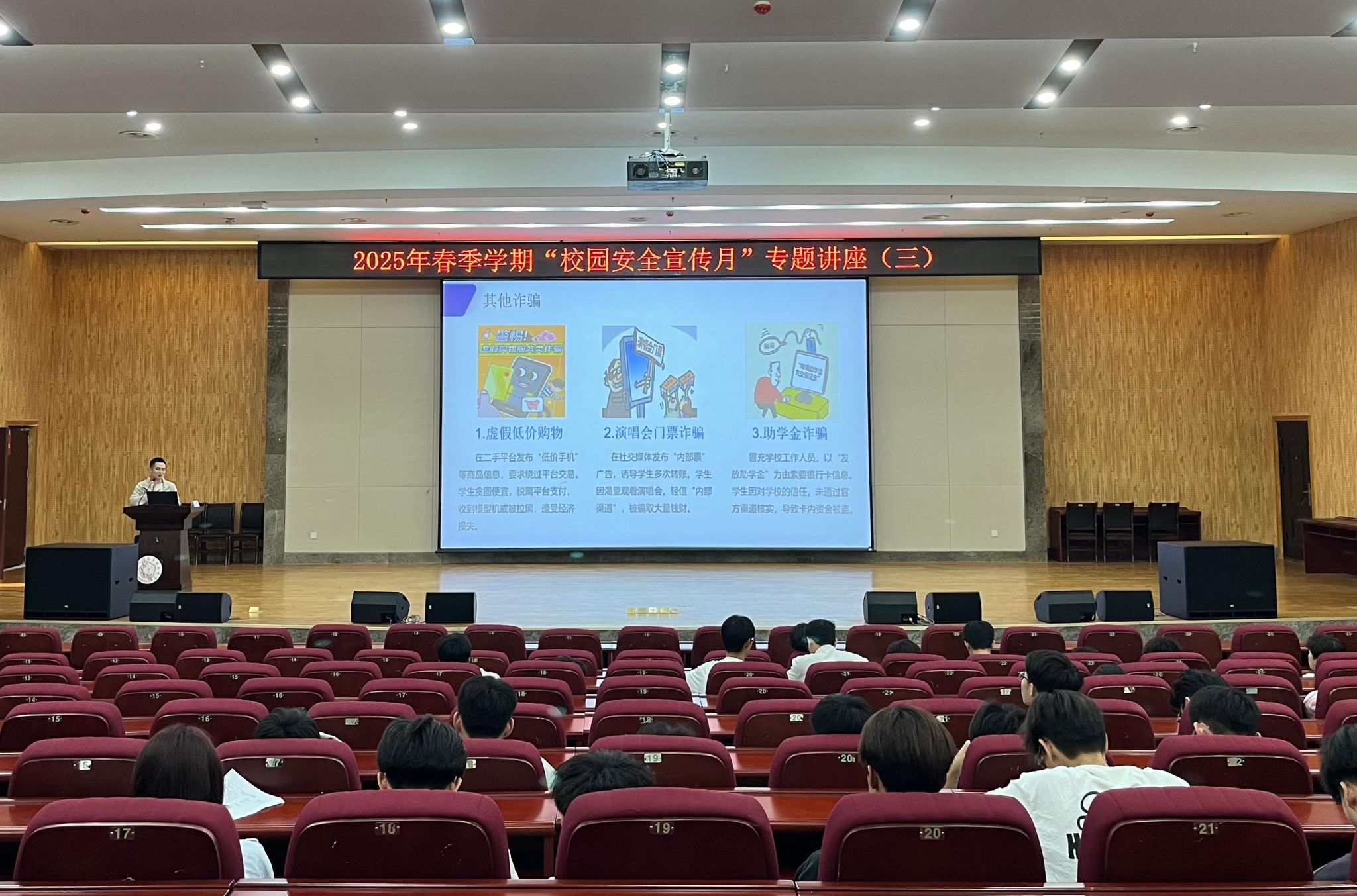 在讲座中,陆警官以生动的案例和幽默的语言深入剖析了常见的诈骗手段,如网络刷单、网络游戏代打以及演唱会门票诈骗套路等。随后陆警官向同学们详细讲解了诈骗团伙的作案特点和流程,指出诈骗活动的复杂性和隐蔽性。最后,陆警官分享了一系列实用的防诈骗技巧,如不轻易透露个人信息、谨慎对待陌生来电和网络链接、下载国家反诈中心APP并开启预警功能等。讲座中引用的各类案例引起同学们现场热烈讨论,取得良好宣传效果。