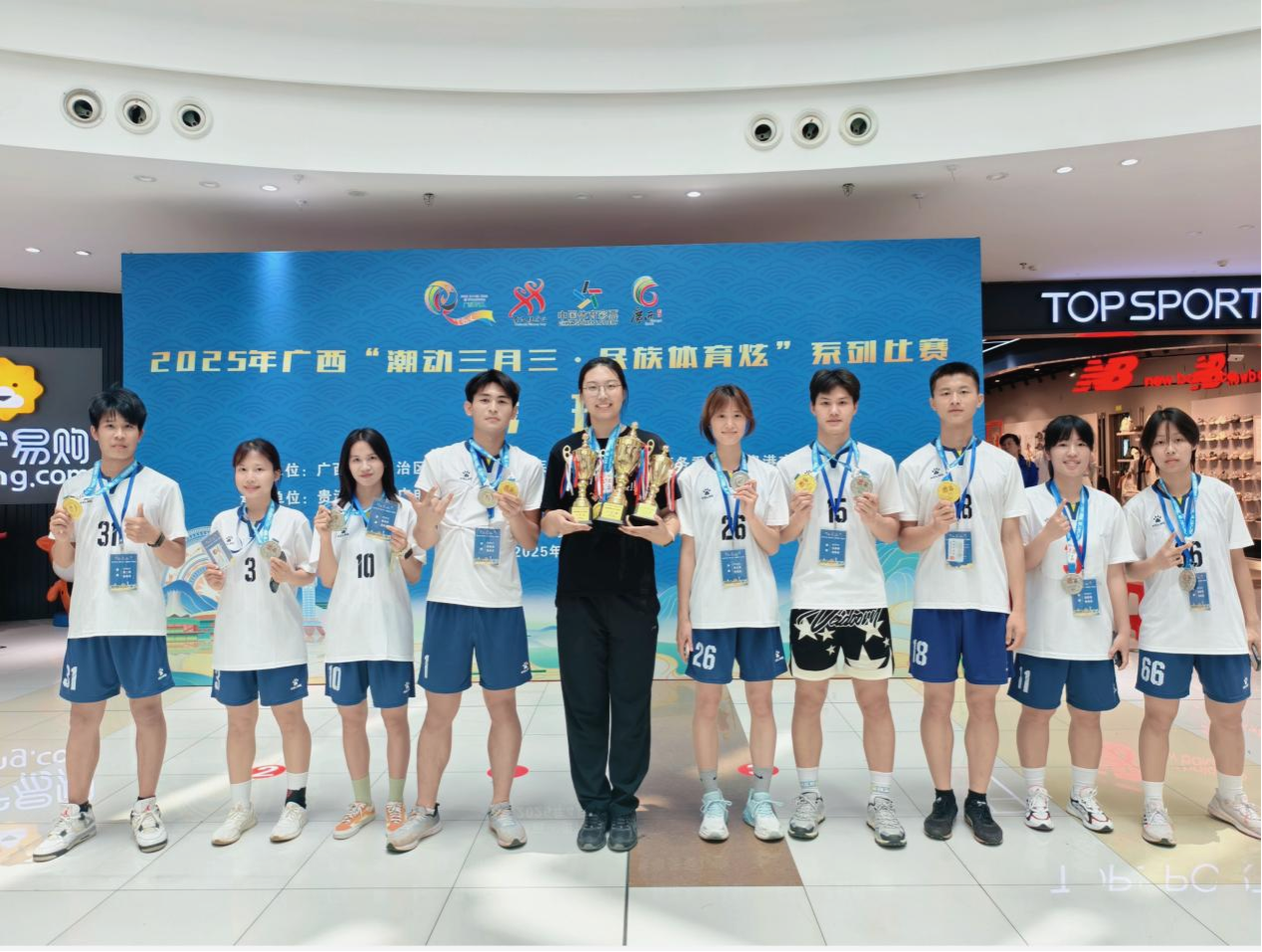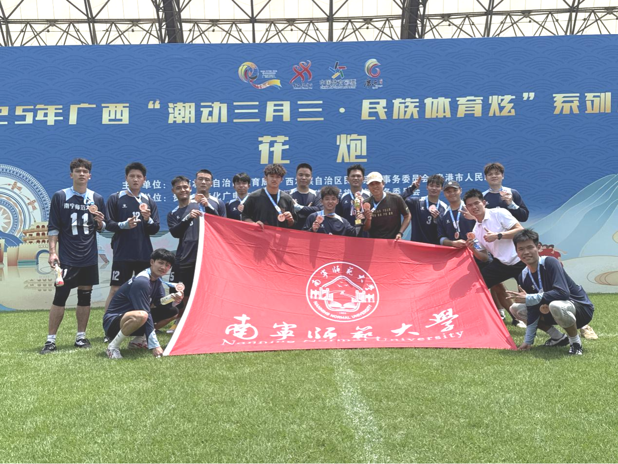 2025年4月19日至20日,由自治区体育局、自治区民宗委、贵港市人民政府主办,贵港市文化广电体育和旅游局、贵港市民宗委承办的2025年广西“潮动三月三·民族体育炫”系列比赛在贵港市隆重举行,公司派出绣球队、花炮队、高脚竞速队、珍珠球队共4个代表队参赛。经过2天激烈的角逐,公司绣球队勇夺1金2银,高脚竞速队揽获5银1铜,花炮队、珍珠球队各摘1枚铜牌,以累累硕果彰显南宁师大民族体育的竞技实力。