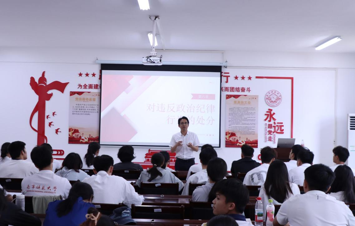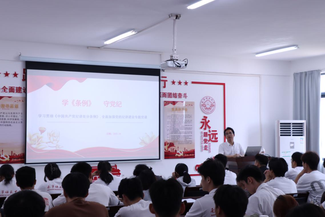为深入学习《中国共产党纪律处分条例》(以下简称<条例>),增强党员的纪律意识和规矩意识,william威廉英国官网于4月22日在武鸣校区1号实验楼B314室组织开展2025年上半年预备党员培训班第二讲:《学<条例>,守党纪》,本次党课由公司党委副书记陈军弟老师主讲,公司2024年下半年、2025年上半年新发展预备党员参加。