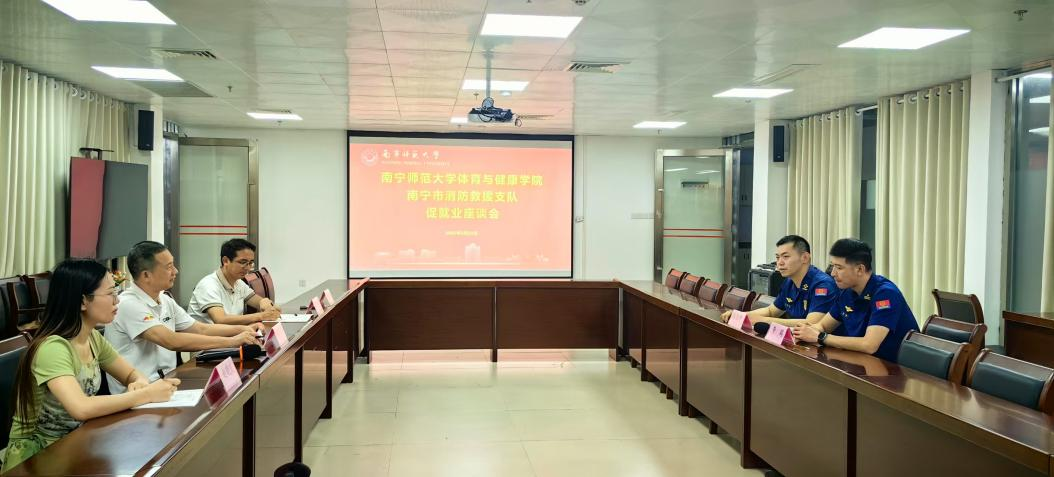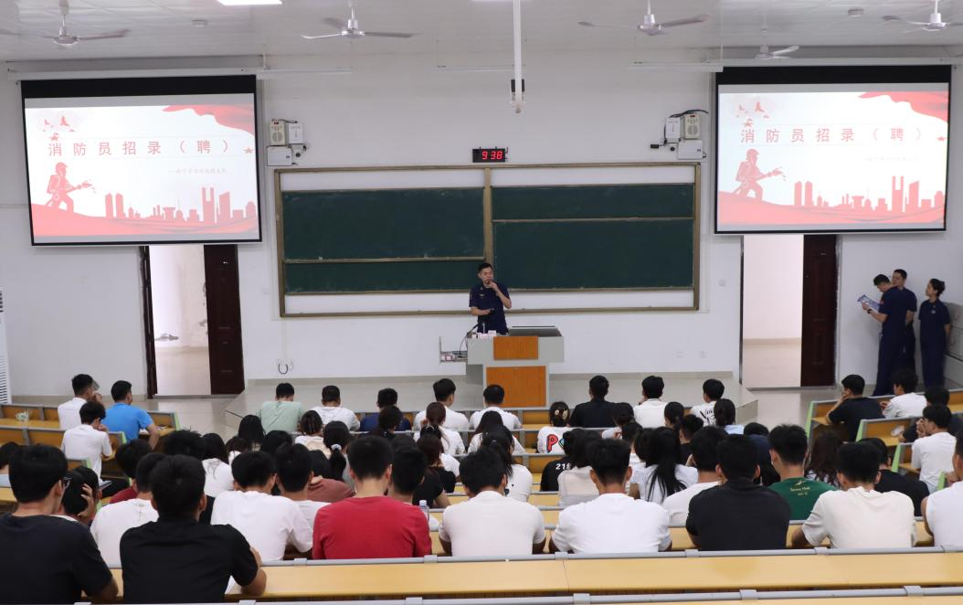 为进一步落实2025届毕业生就业工作,扩大就业空间,提升就业质量,5月23日,william威廉英国官网邀请南宁市消防救援支队入校开展促就业座谈会及招聘宣讲会。会议分别在武鸣校区3号实验楼1517会议室、2号实验楼B108教室举行,公司党委书记磨有积、副书记陈军弟及学工办老师出席,超80名毕业班员工参加招聘宣讲会。