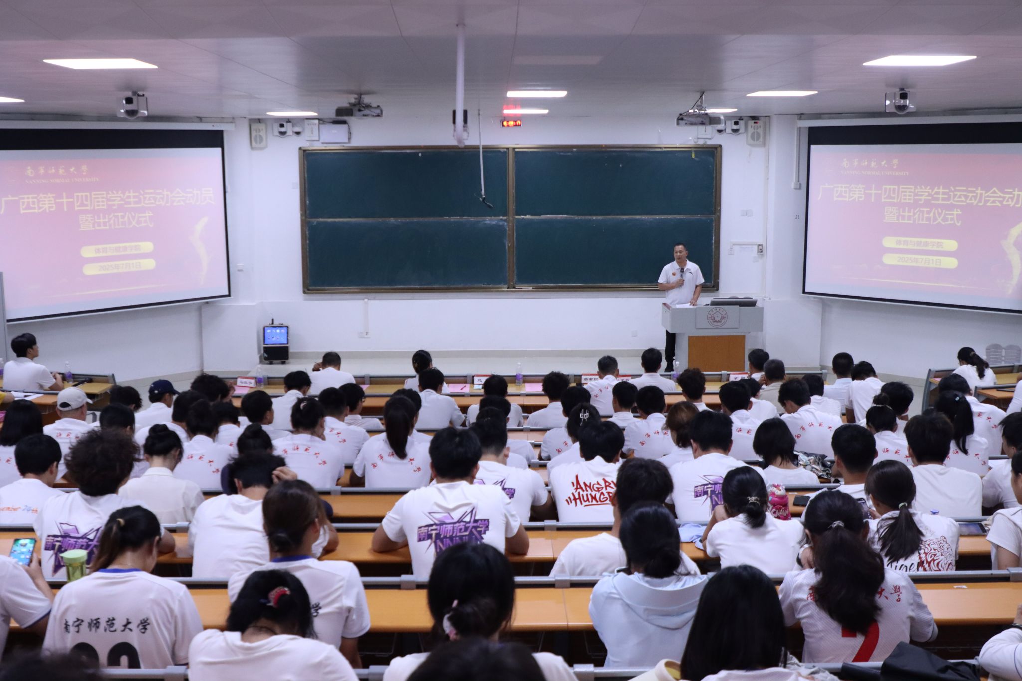 陈军弟副书记则聚焦赛风赛纪与团队管理。他明确指出,体育竞赛不仅是竞技的比拼,更是作风的比拼;禁止弄虚作假、违规饮酒等行为,要求统一着装、文明举止;强调走出校门即代表公司形象,肩负维护南师声誉的责任。