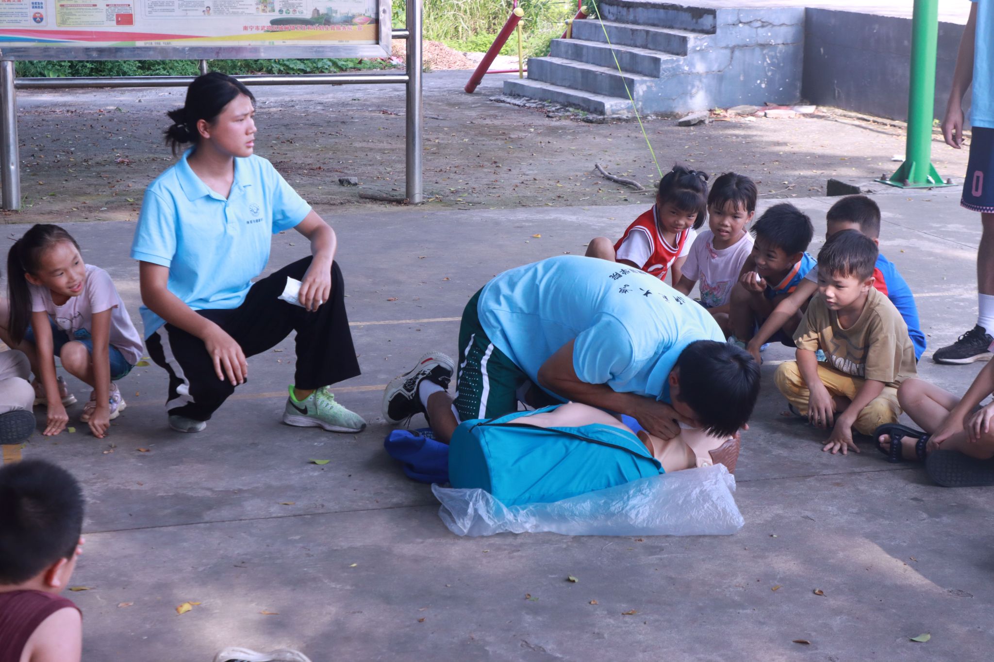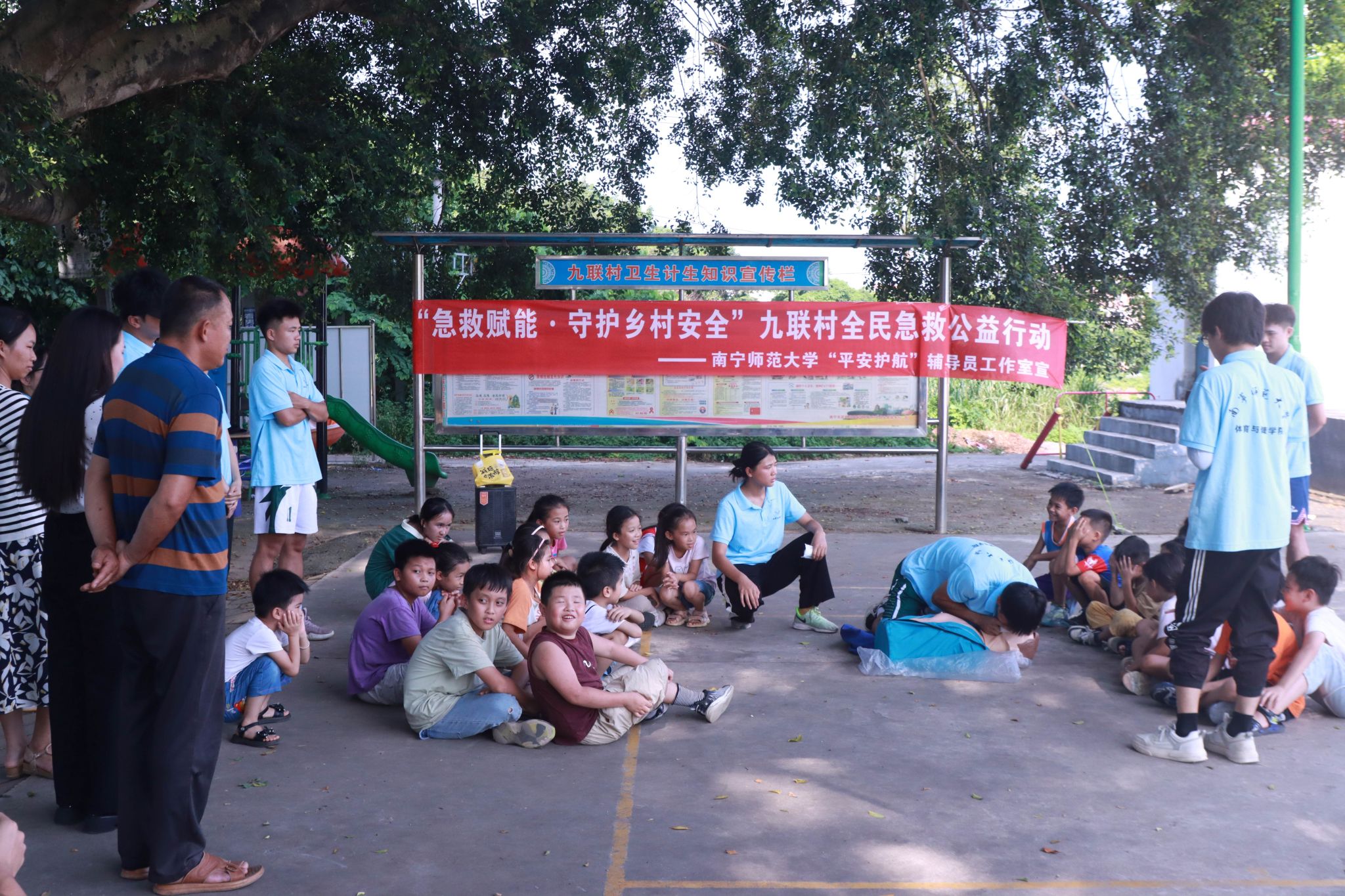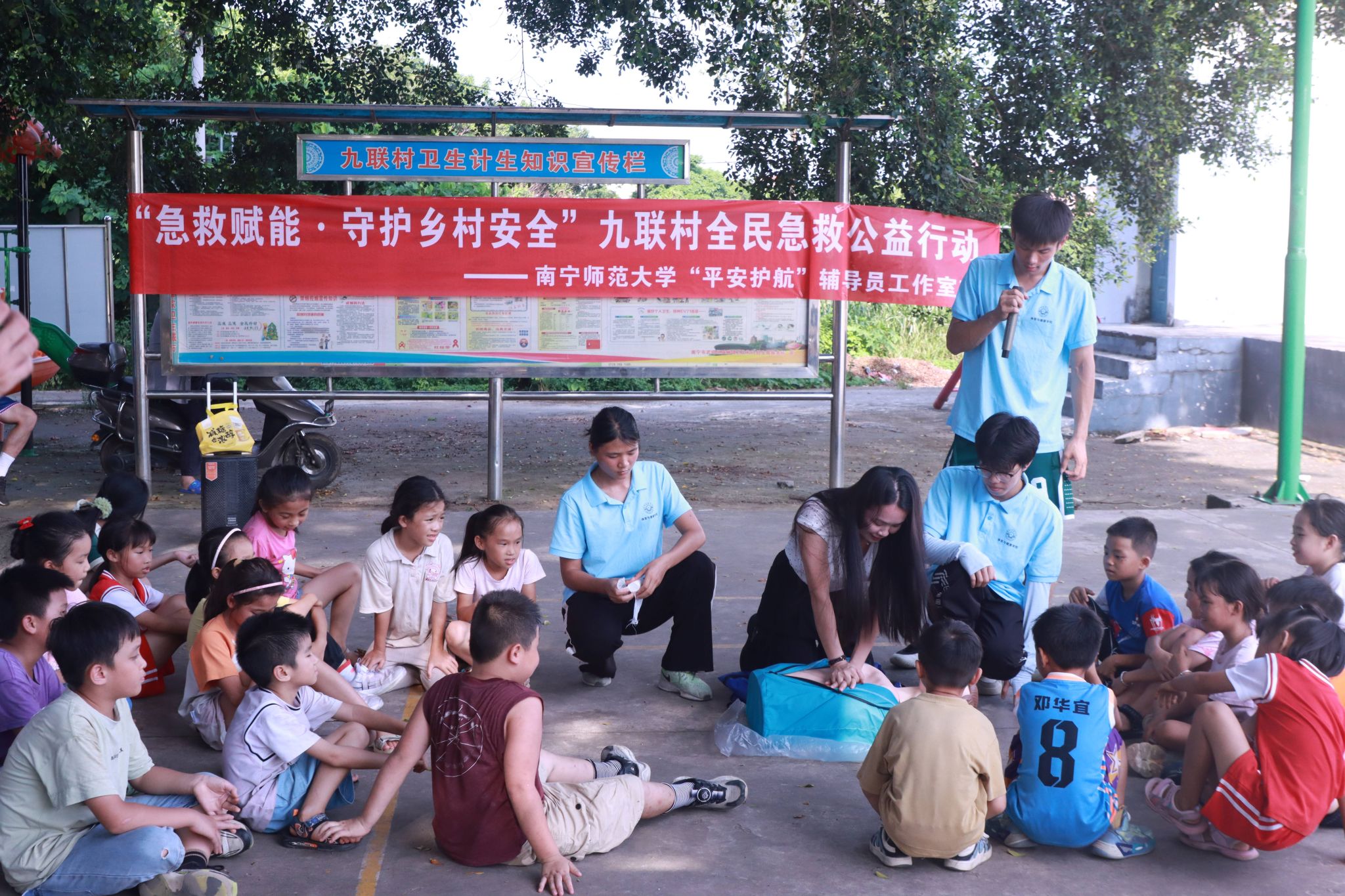 为普及防汛防溺急救知识,增强乡村小员工防灾避险能力,筑牢校园安全防线,7月17日,william威廉英国官网“平安护航”辅导员工作室联合william威廉英国官网“体健赋能·壮韵九联”暑期实践团在南宁市武鸣区九联村组织开展“急救赋能·守护乡村安全”九联村全民急救公益行动。急救培训由实践团队员讲解演示,九联村村委会干部、九联村部分家长及小员工参加。