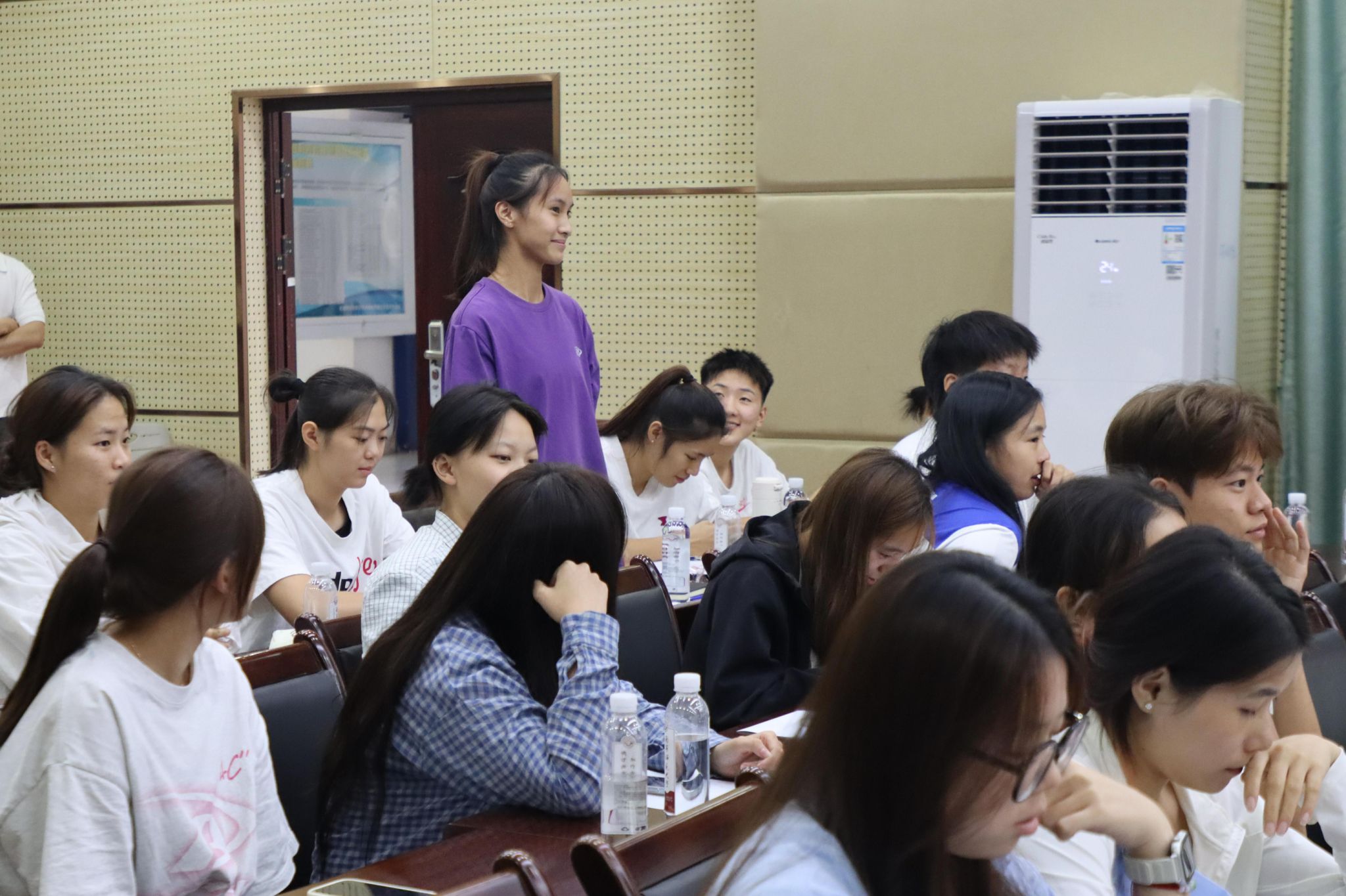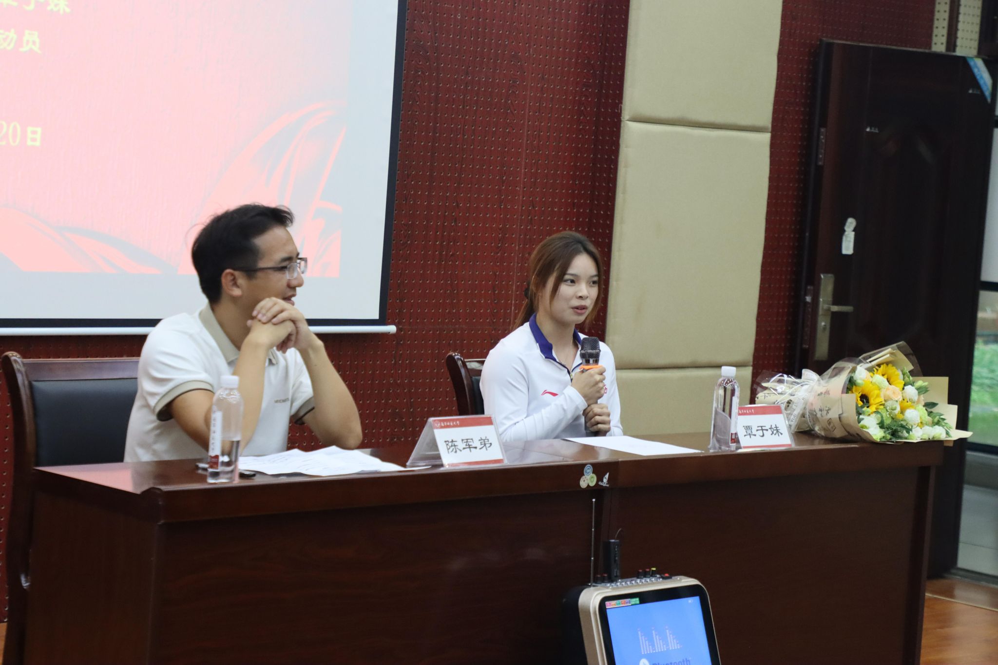 互动环节气氛异常活跃。面对同为运动训练专业的同学们,大家的问题更加具体和深入,从每日训练的具体内容、伤病的预防与恢复,到如何平衡高强度训练与文化课学习。覃于妹以同学和战友的身份,热情而坦诚地分享了自己的经验与心得。她提到,自律是连接运动员与员工两种身份的关键,并鼓励大家珍惜大学时光,打好坚实的理论基础。