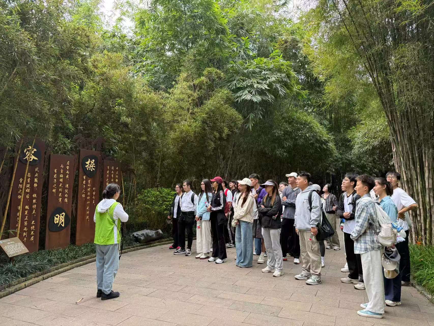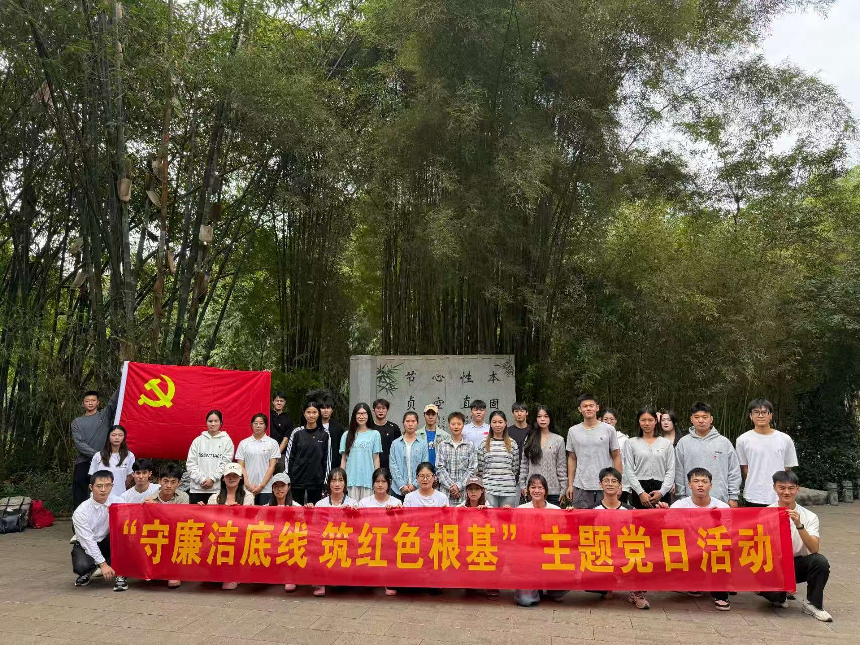 最后,全体党员同志走进竹园,来到青秀山竹园廉洁文化主题园,依次参观了名人典故雕塑,学习了“廉石压舱”的历史典故,于翠竹环绕间领悟竹之节与廉之守的内在共鸣。