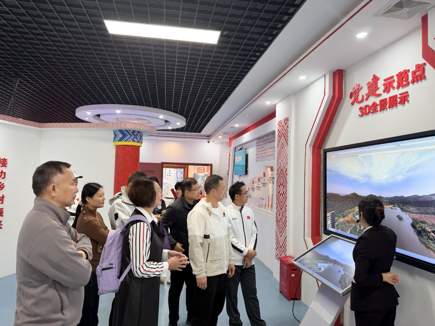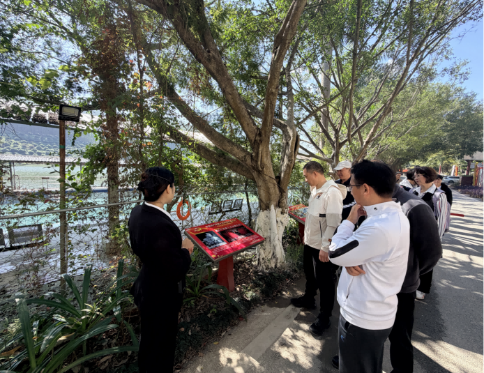 在讲解员的引导下,党员教师们踏上“红色步道”,系统学习了从党的一大到党的二十大的光辉历程,深入回顾了中国共产党的奋斗历史。大家依次参观了华纳先锋宣传长廊、党建馆以及纳米钙数字科技展厅等特色展区。活动中,党员教师们观摩了党建示范点的3D全景演示,亲身体验党史知识考核小程序,在互动中进一步巩固了党史知识,增强了对广西地方党史和经济社会发展历程的理解与认识。