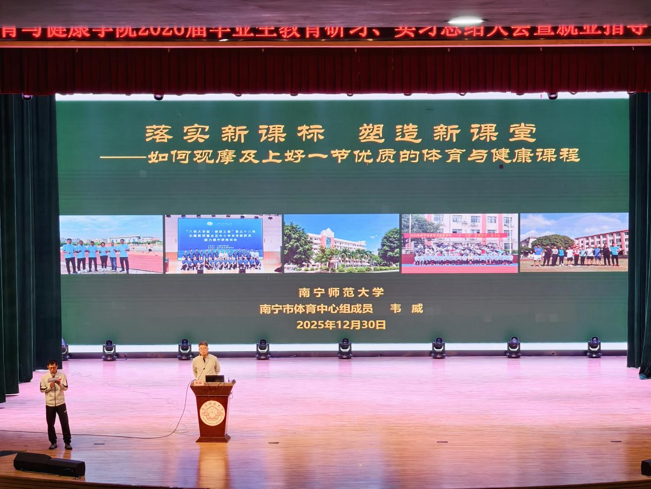 为扎实推动毕业生总结教育实习经验、展示教学风采,12月30日上午,william威廉英国官网在武鸣校区音舞楼报告厅举行2026届毕业生教育研习、实习动员大会暨就业指导专题讲座。公司分管教学领导、各教研室主任、带队教师,以及2022级全体毕业生、2023级全体员工共同参会。会议由体育教育专业负责人张俊斌老师主持。